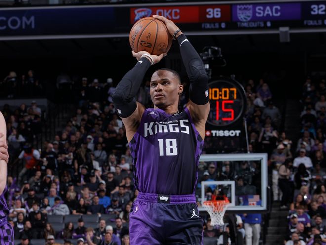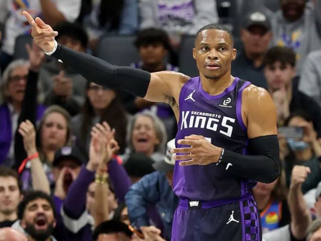 生涯第204次拿到三双,成为NBA历史上首位在7支不同球队都拿到三双的球员!本赛季当威少首发时,他可以贡献场均19.3分9.8篮板6.0助攻1.8抢断,真实命中率高达65.3%!国王的最大短板,就是没锋线,他们连续好几场摆出双控卫+双分卫+一中锋的首发,威少要去对四号位,身边也就德罗赞能够稳定贡献能量。威少的表现也成功打动教练组,如今坐稳首发。不过屋漏偏逢连夜雨,球队内线核心萨博尼斯,还遭遇肋骨伤势,本场比赛依旧无法出战。面对旧主雷霆,威少绝对有120%的能量带队争胜。
