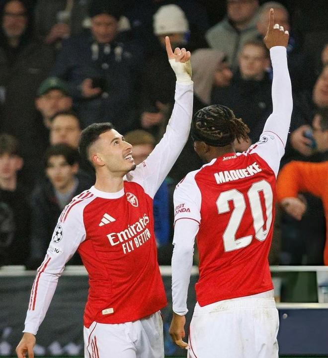 比赛开打之后,阿森纳就反客为主,在场上压制住了布鲁日,马杜埃凯上下半场各入一球,早早帮助球队取得2球领先,随后马丁内利轰入一记无解世界波,帮助阿森纳客场3-0带走胜利。